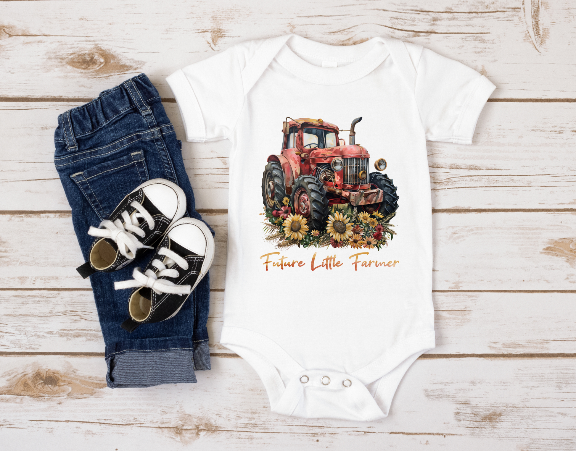 Bring a touch of rural charm to your little one’s wardrobe with the "Future Farmer" Baby Onesie or Toddler T-Shirt. Order now and watch them grow into their love for the great outdoors!